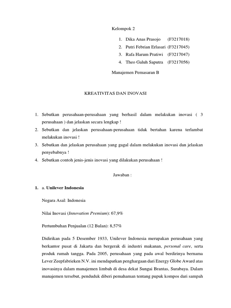 Inovasi Produk from 3.bp.blogspot.com Contoh budaya perusahaan juga dipengaruhi oleh budaya nan dianut oleh atasan, dalam hal ini irama kinerja nan diterapkan.3. Contoh makalah kreatifitas dan inovasi dalam wirausaha. Apa contoh inovasi bisnis terbaik? Rumusan masalah apakah yang dimaksud dengan kreativitas ? Kesuksesan tesla dalam menjadi pelopor perusahaan otomotif berbasis listrik tidak terlepas dari inovasi yang dilakukan oleh tesla dalam teknologi mobil. Ada banyak sekali perusahaan yang akhirnya gagal bersaing di pasar akibat mengabaikan inovasi. Dalam hal perkembangan perusahaan, mulai dari berdiri. Itu dimaksudkan agar perusahaan dapat bekerja secara lebih efisien dan fleksibel, sehingga dapat mengikuti setiap boptimal.