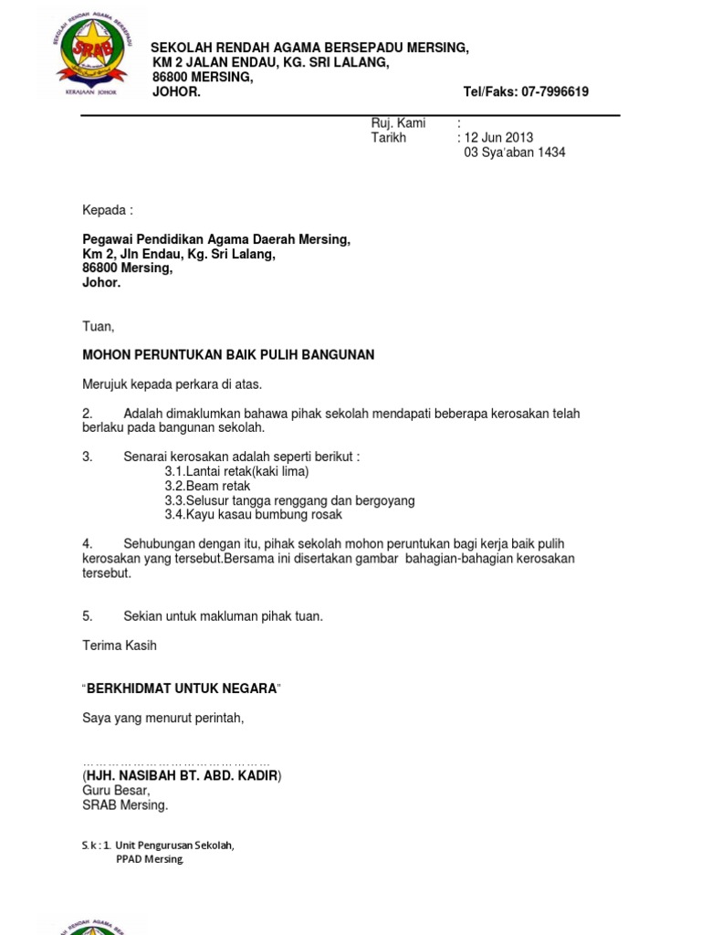 Related : Contoh Surat Cadangan Baik Pulih Rumah - 6th juni 2021 4 min read..